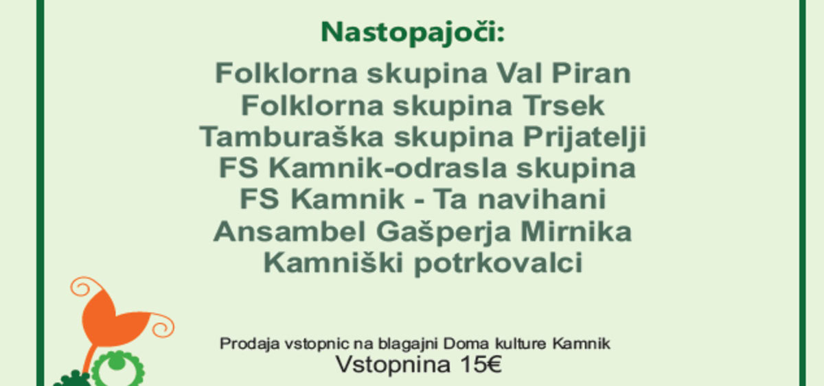 Folklorna skupina vabi na prireditev z naslovom Ples in glasba izpod kamniških planin 2024, ki bo 7. decembra 2024, ob 19. uri v Veliki dvorani Doma kulture Kamnik. Cena vstopnice: 15 […]