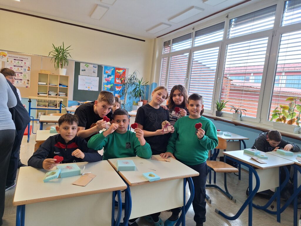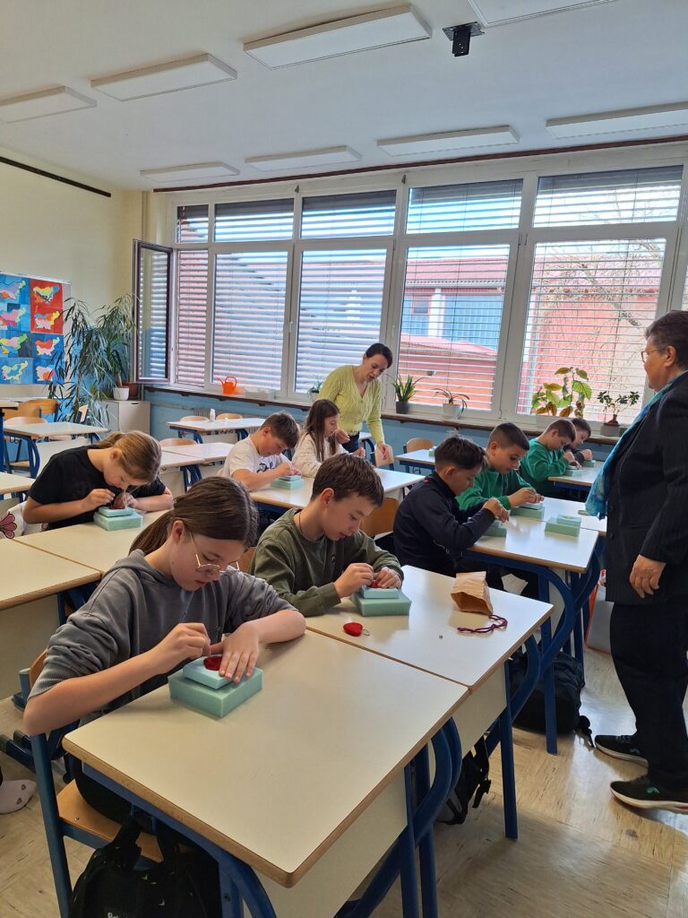 Učenci so z veliko mero potrpežljivosti in vztrajnosti ustvarjali svoje unikatne izdelke. Vsak je izdelal obesek za ključe v obliki srčka, namenjen kot pozorno darilo ob materinskem dnevu. Pri delu so pokazali predanost in skrbnost, saj so z mislijo na razveseljevanje svojih mam prav vsi svoje izdelke tudi uspešno dokončali.